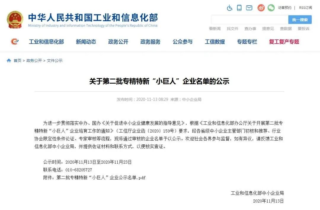 此次專精特新“小巨人”企業(yè)的評選是根據(jù)《工業(yè)和信息化部辦公廳關(guān)于開展第二批專精特新“小巨人”企業(yè)培育工作的通知》(工信廳企業(yè)函〔2020〕159號)要求,經(jīng)各省級中小企業(yè)主管部門初核和推薦、行業(yè)協(xié)會限定性條件論證、專家審核等流程,歷時4個月的時間,最終由工業(yè)和信息化部認(rèn)定了一批創(chuàng)新能力強、專業(yè)化發(fā)展明顯、管理水平先進(jìn)、轉(zhuǎn)型升級突出、市場占有率高、質(zhì)量效益較好的專精特新“小巨人”企業(yè)。